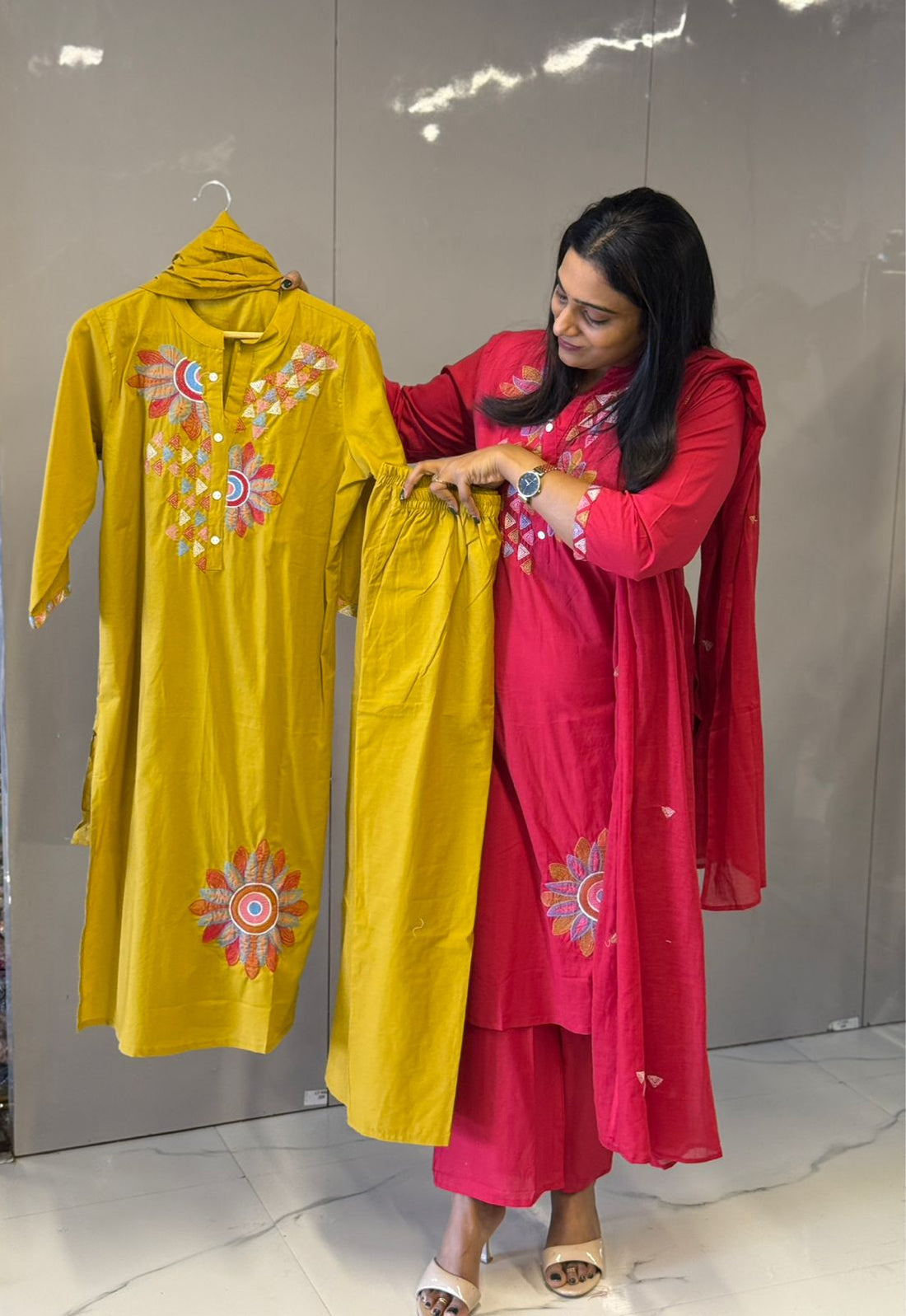 The Pure cotton 3 pcs set is adorned with delicate all-over motifs, finished with a...