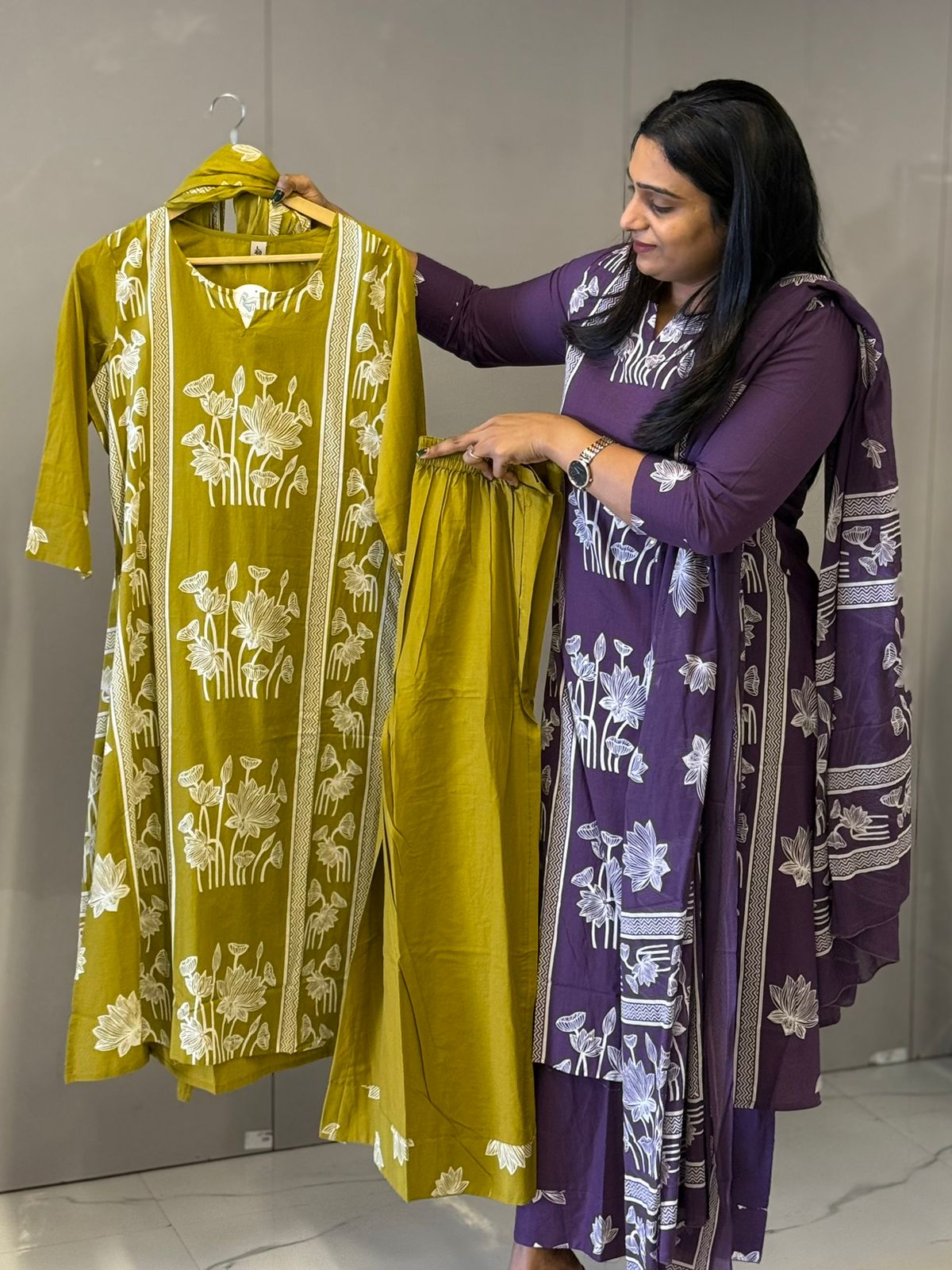 The Pure cotton 3 pcs set is adorned with delicate all-over motifs, finished with a beautifully embroidered hemline. Paired with a matching teal dupatta featuring subtle detailing, this ensemble is perfect for festive occasions, weddings, parties, and special celebrations.