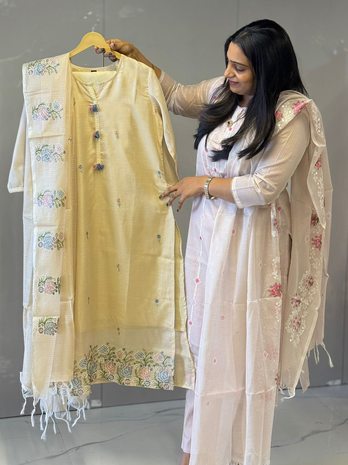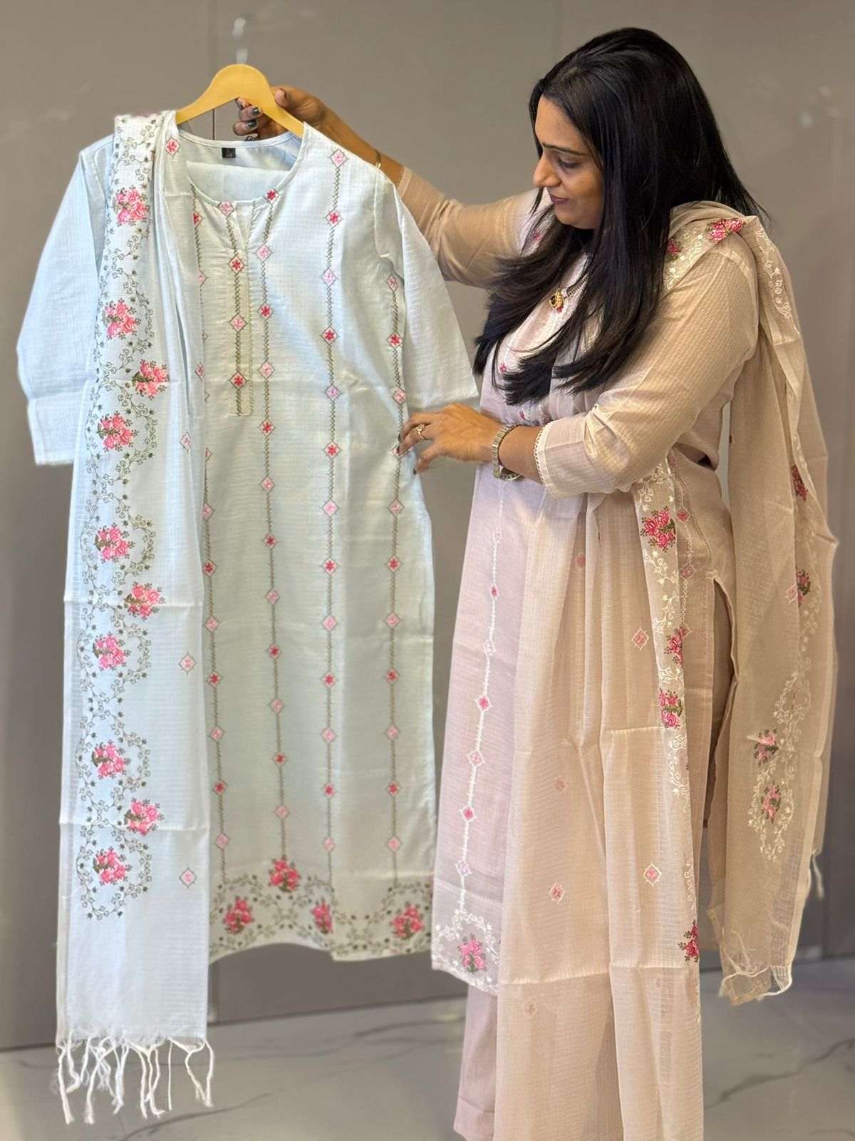 The Pure Kotta is adorned with delicate all-over motifs, finished with a beautifully embroidered hemline. Paired with a matching teal dupatta featuring subtle detailing, this ensemble is perfect for festive occasions, weddings, parties, and special celebrations.