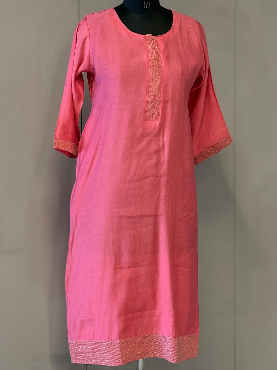 Elevate your everyday ethnic style with this pastel pink ikat print kurti for women, designed to offer both comfort and elegance. Crafted from soft and breathable fabric, this kurti features a classic V-neckline with textured detailing that adds a refined ethnic touch.